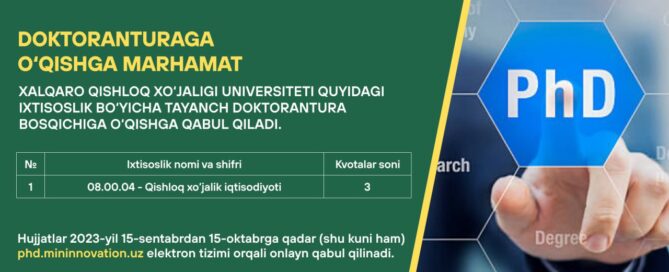 Doktaranturaga O`qishga Marhamat ? Xalqaro qishloq xo'jaligi universiteti tayanch doktorantura [...]
